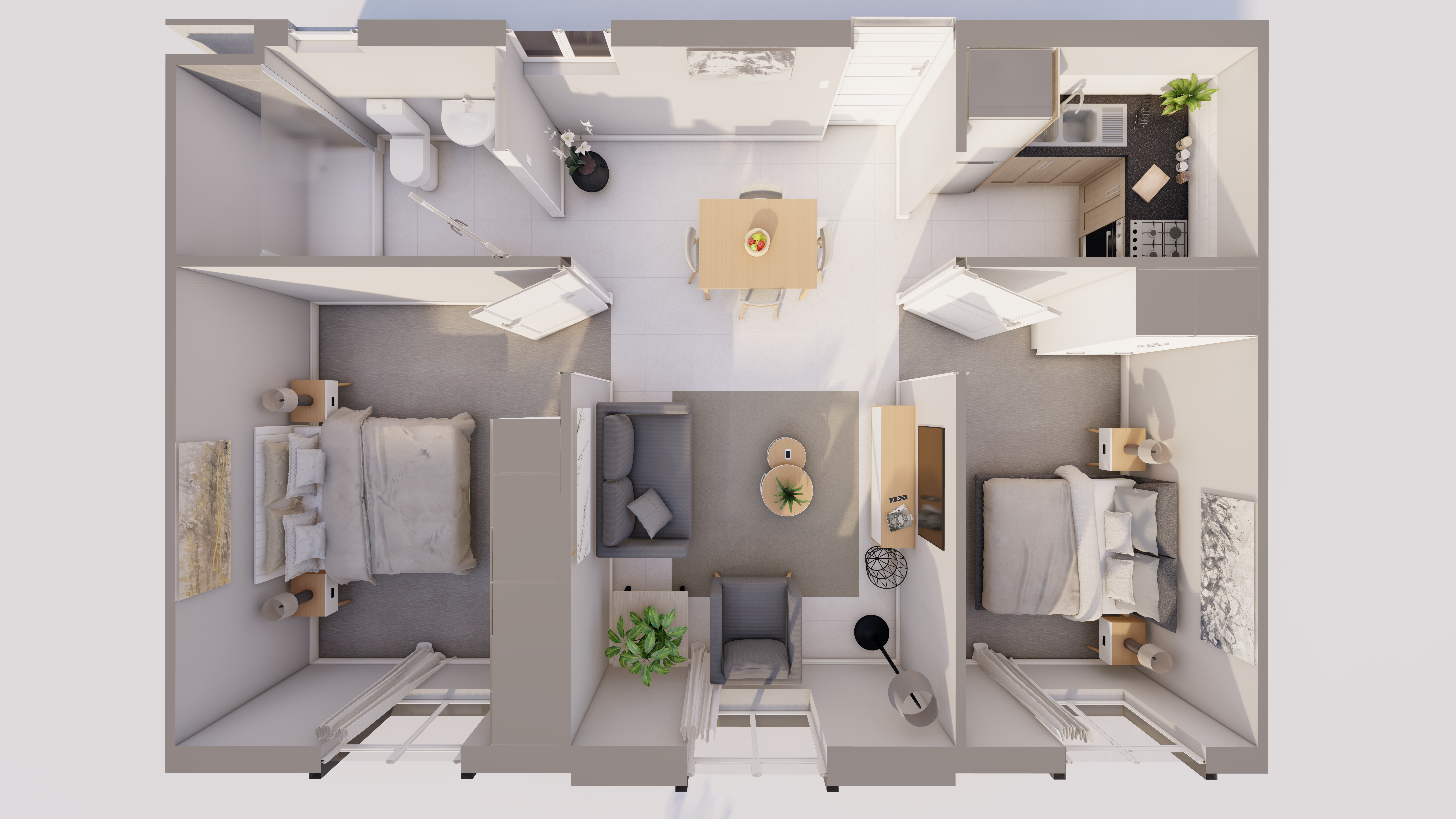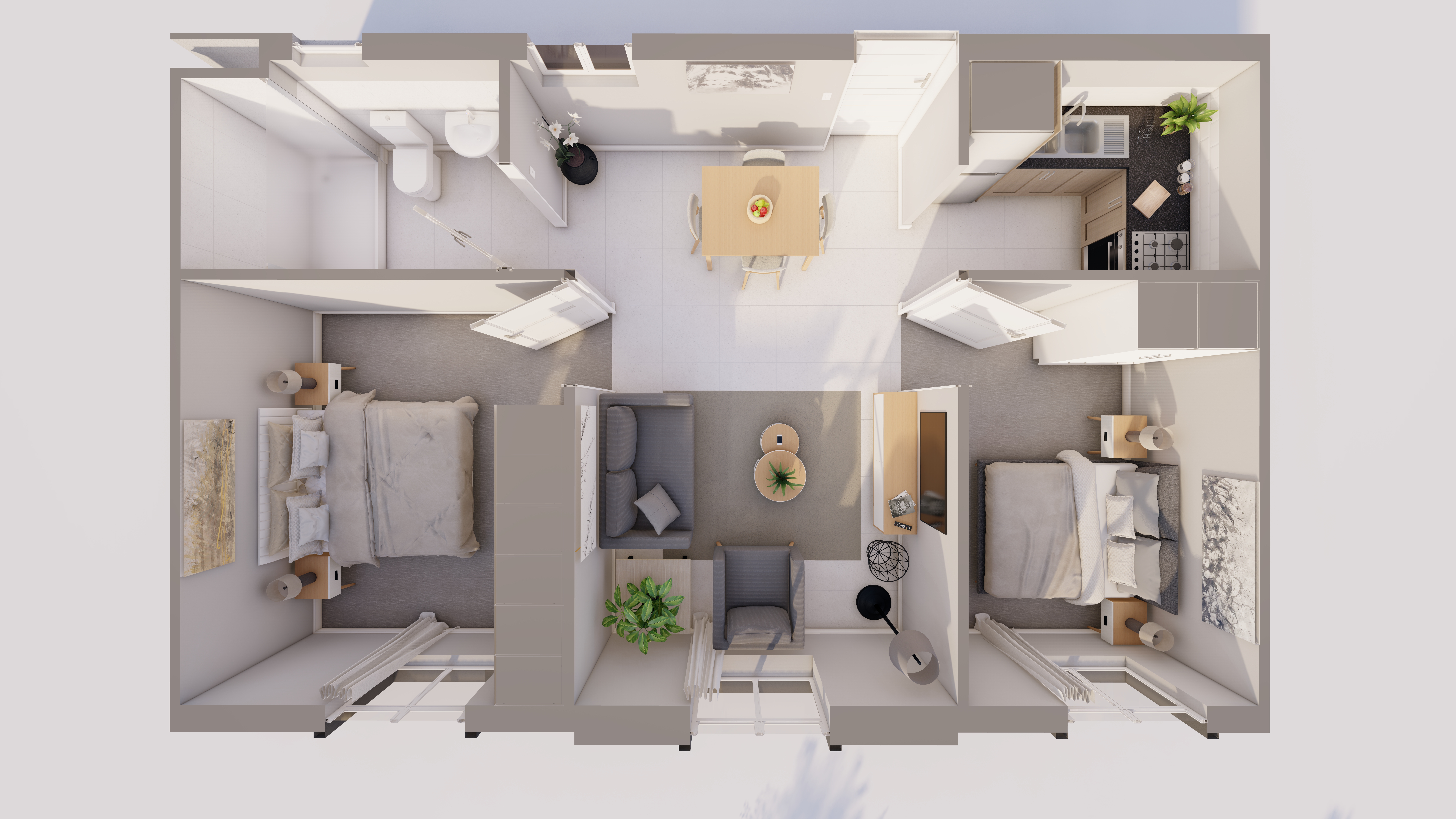 A stylish 2-bedroom apartment with an open-plan design, blending modern convenience with comfort for everyday living.