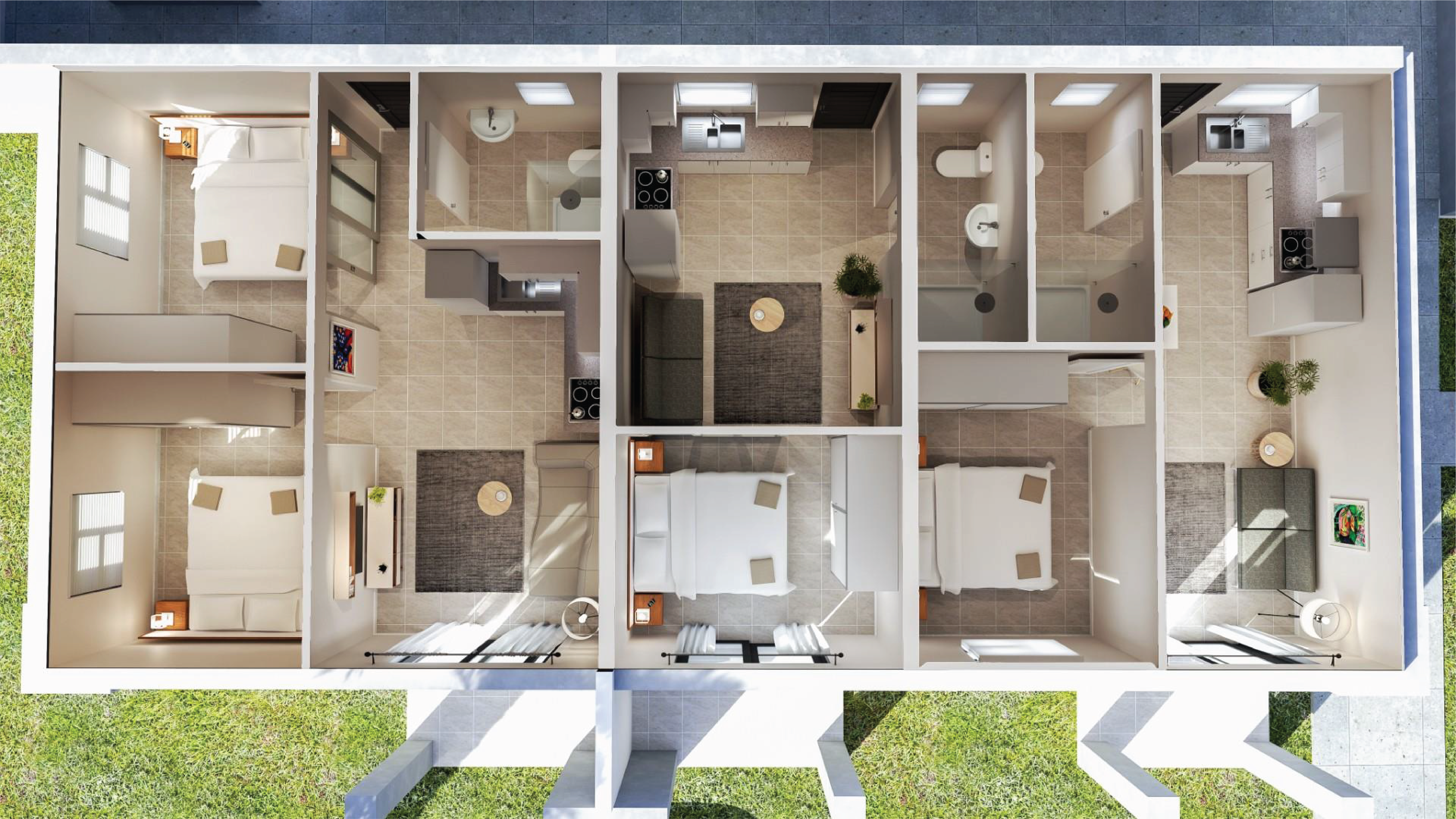 Type A: 1 Bedroom, 1 Bathroom (40 m²)