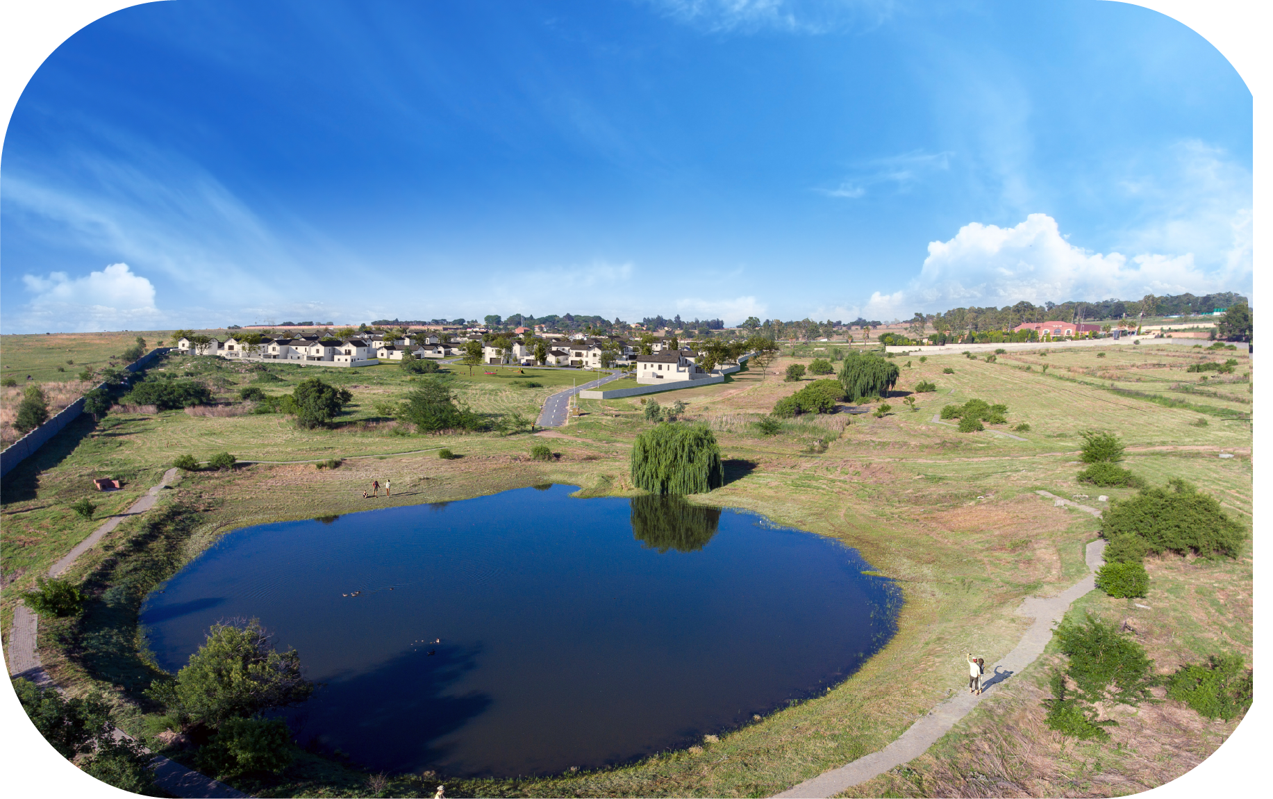 Secure gated estate with greenbelts, walking paths, natural dams, and fibre-ready infrastructure.